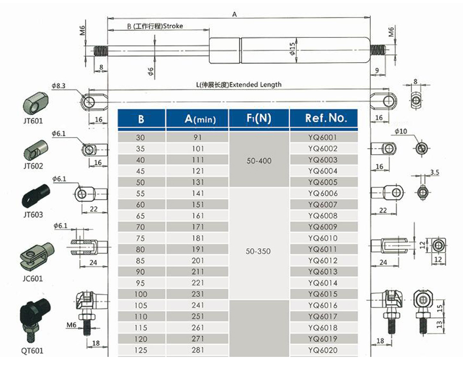 注:由于氣彈簧是非標(biāo)準(zhǔn)的,以上僅為型號的一部分。我們可以根據(jù)客戶的要求定制。
